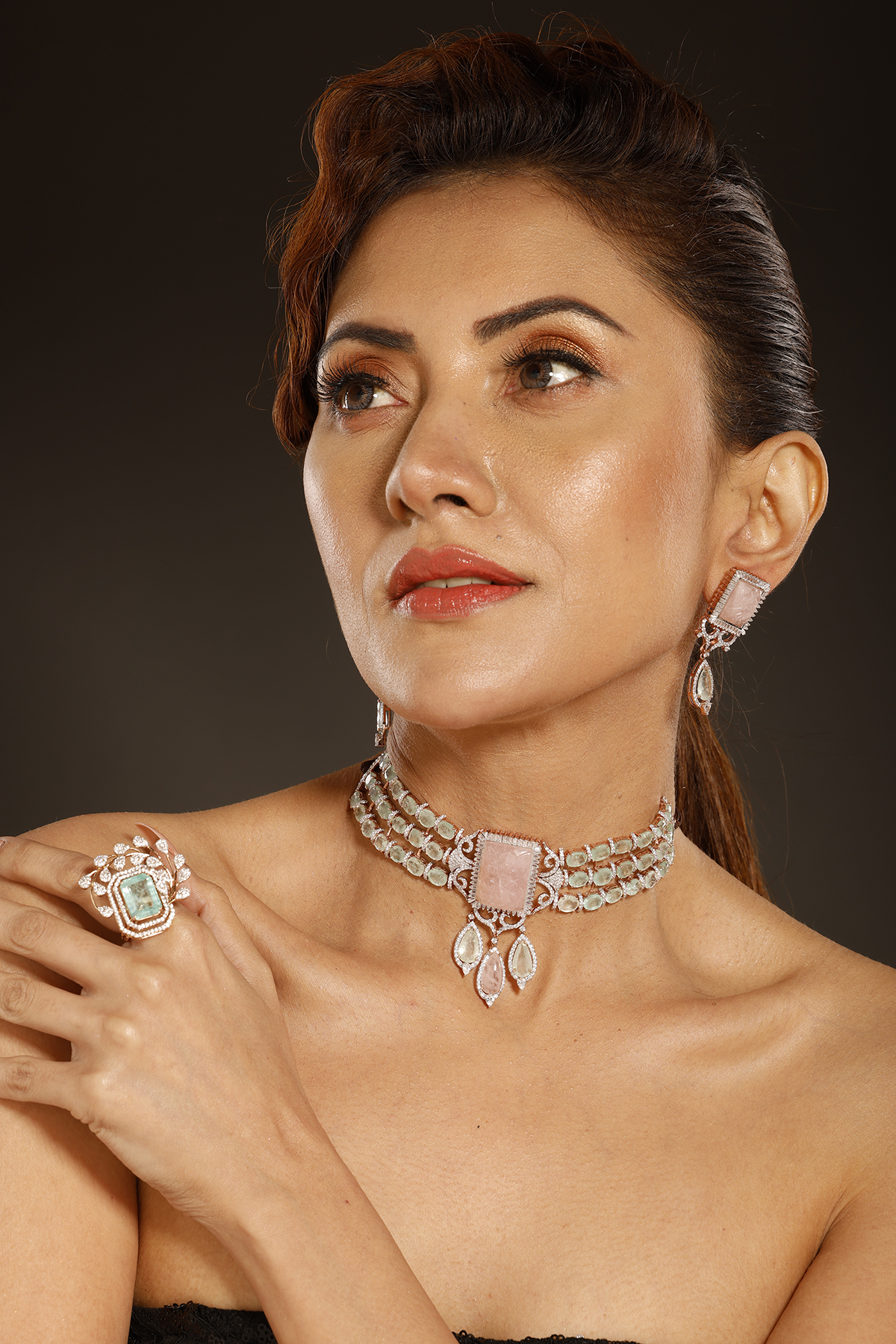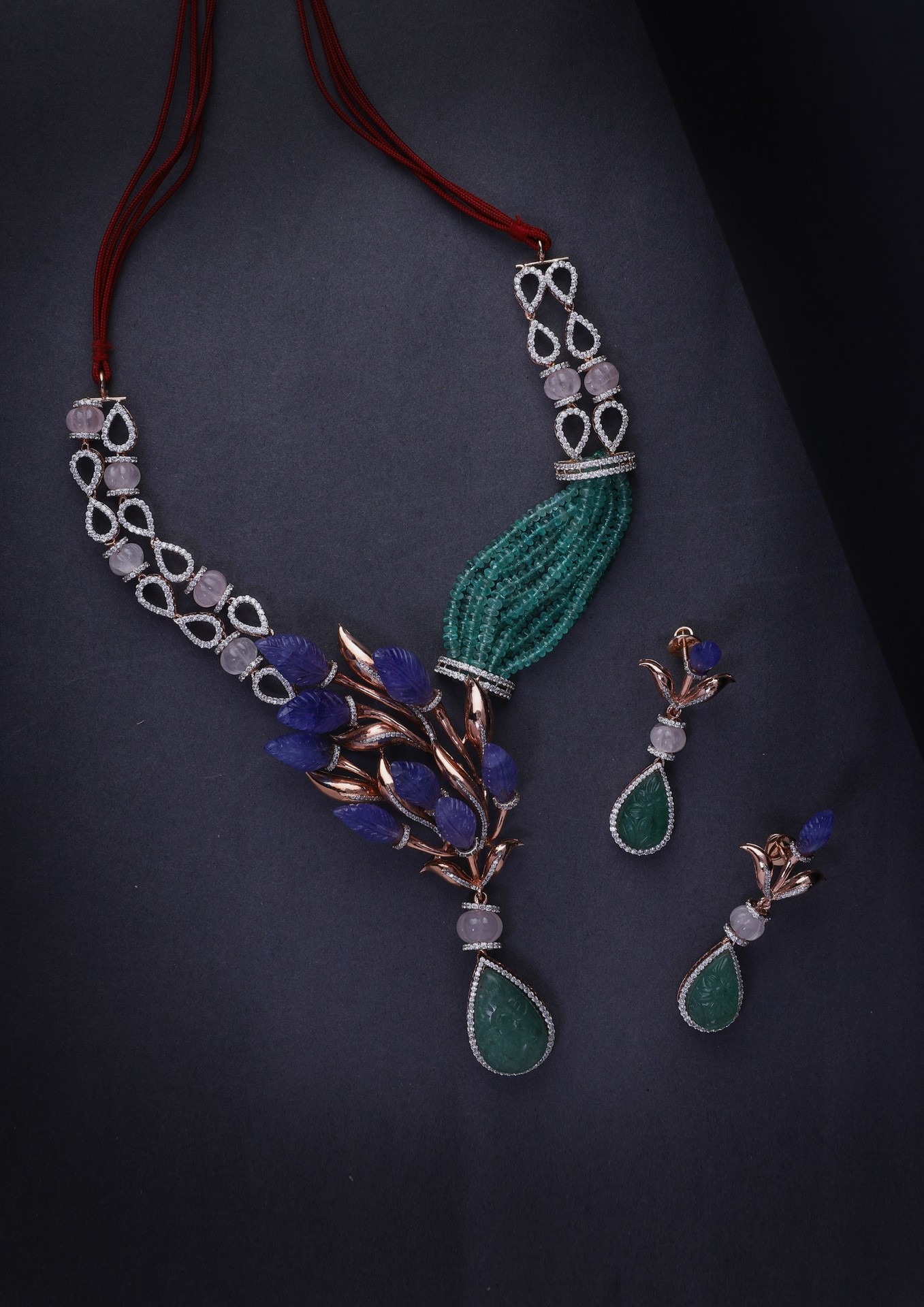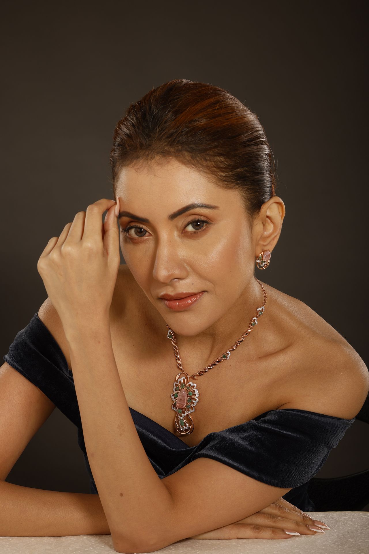 Envelop yourself in the saturated radiance of the Ratnamalaa collection. This line features exquisite strands of high-grade colored stones (malas) perfectly paired with sculptural, striking pendants, seamlessly blending honored tradition with a distinct contemporary sensibility.